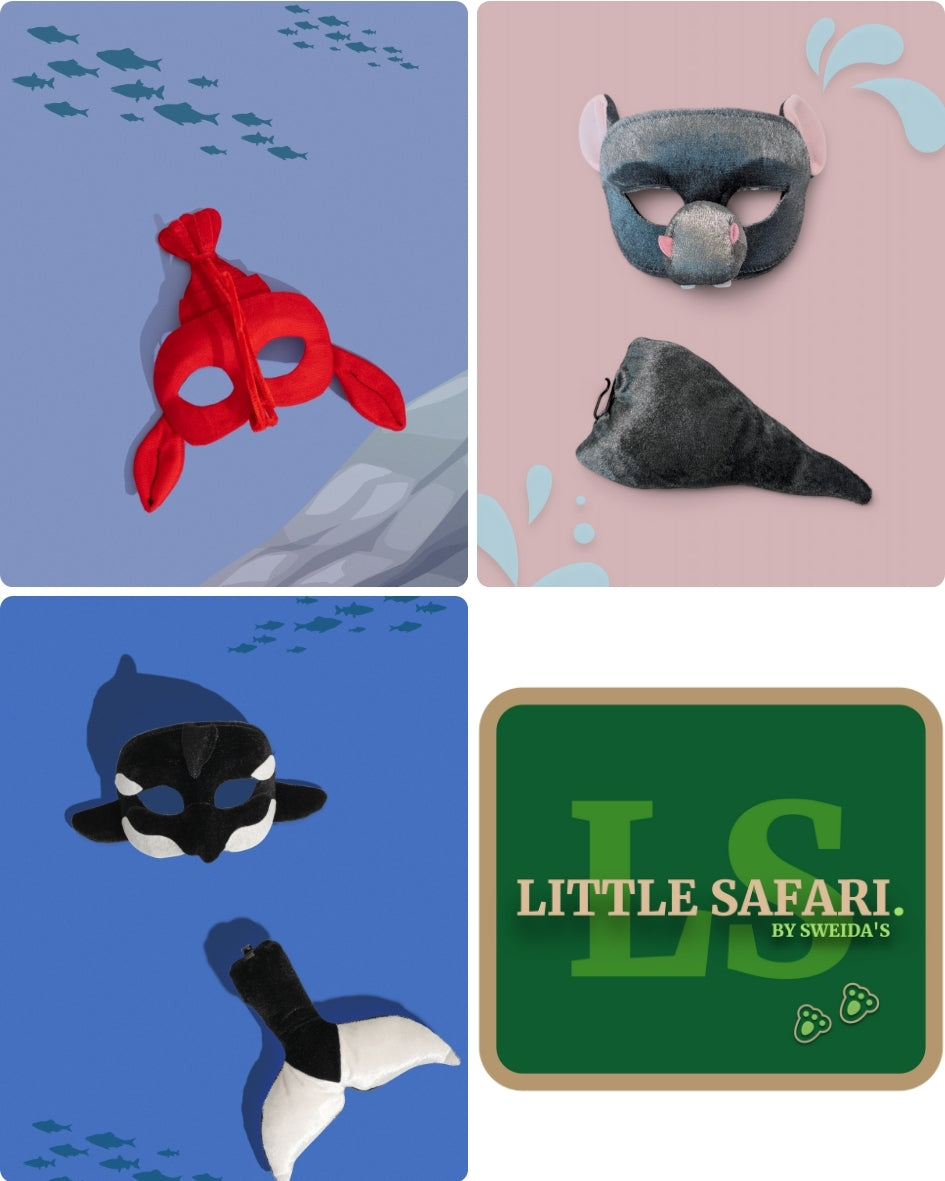 11 x Hand-crafted Animal mask & tail role-play sets (Dolphin, Shark, Octopus, Lobster, Penguin, Orca, Crocodile, Clown Fish, Duck, Hippo, Turtle)